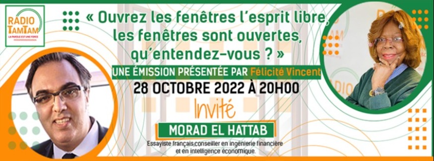 Il ne vous reste plus que quelques jours pour télécharger nos App Store, Google Play pour écouter notre émission "Ouvrez les Fenêtres l’Esprit Libre, les Fenêtres sont Ouvertes" prévu le vendredi 28 octobre à 20h00 : mon invité sera Morad El Hattab Essayiste français, conseiller en ingénierie financière et en intelligence économique. Patriote français, des membres de sa famille on appartenu à l’une des cinq unités d’infanterie les plus décorées de la Seconde Guerre Mondiale, placés sous les ordres du général Augustin Guillaume, ils ont obtenu, entre 1942 et 1945, dix-sept citations collectives de l’ordre de l’armée et neuf à l’ordre du corps d’armée.