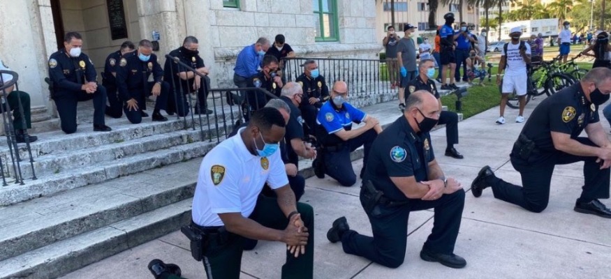 New York, Miami, Orlando, Santa Cruz ou encore Charlotte, les policiers de grandes villes américaines baissent les armes et plient le genou en guise de soutien aux manifestants. Un shérif est même allé jusqu'à manifester avec les citoyens. Chris Swanson, a ainsi décidé de rallier la cause des habitants de Flint (Michigan) et n'a pas hésité à faire savoir qu'il était tout à fait en faveur du mouvement. "On veut être avec vous. J'ai enlevé mon casque, mon arme. On veut faire de ce moment un défilé, non une manifestation" a-t-il ainsi lancé.