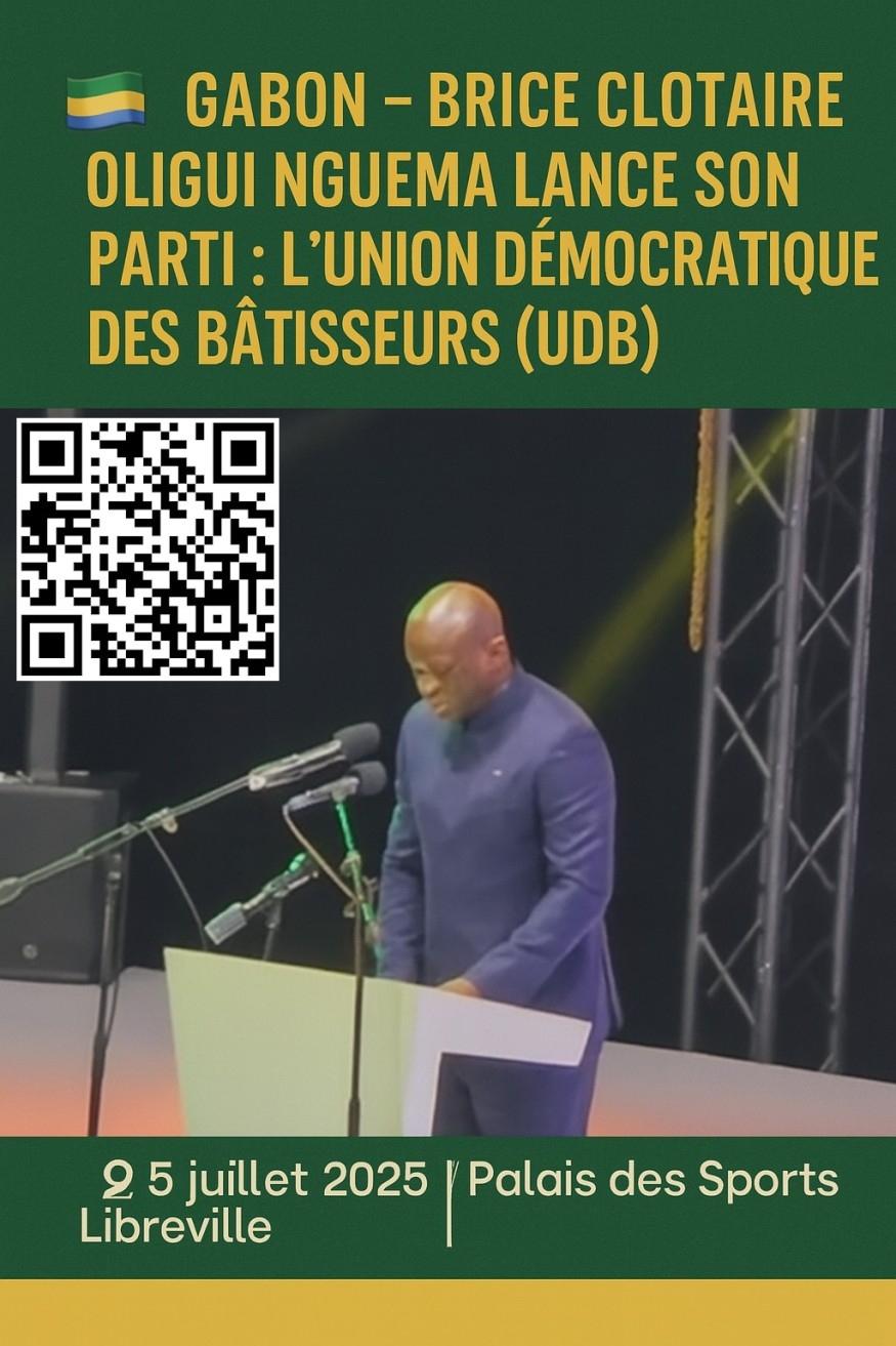 Gabon – Brice Clotaire Oligui Nguema lance son parti : l’Union Démocratique des Bâtisseurs (UDB) Actualité Afrique 2050 05 juillet 2025