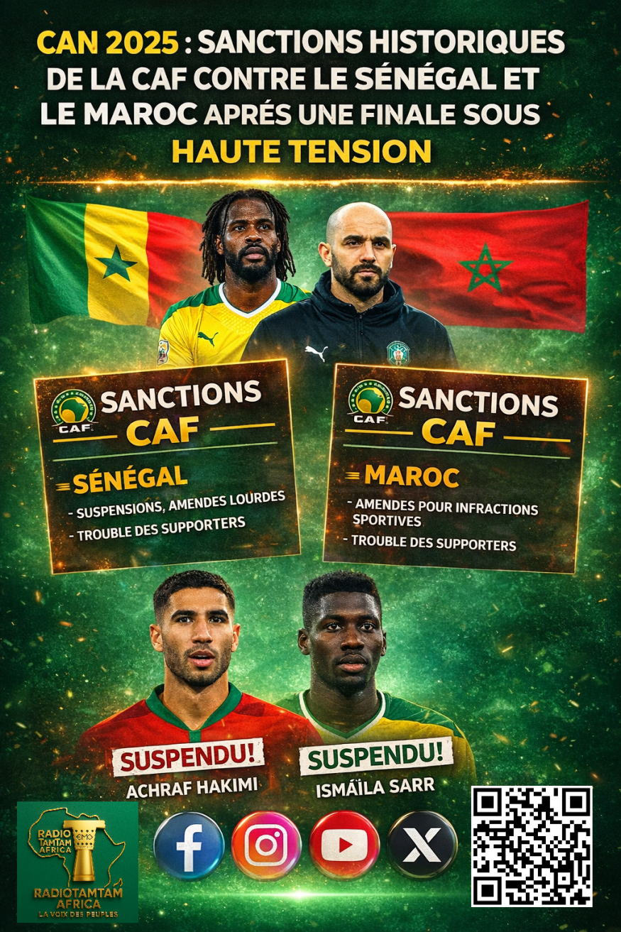 Par Félicité Amaneyâ Râ VINCENT CAN 2025 : sanctions indédites contre le Sénégal et le Maroc après une finale explosive