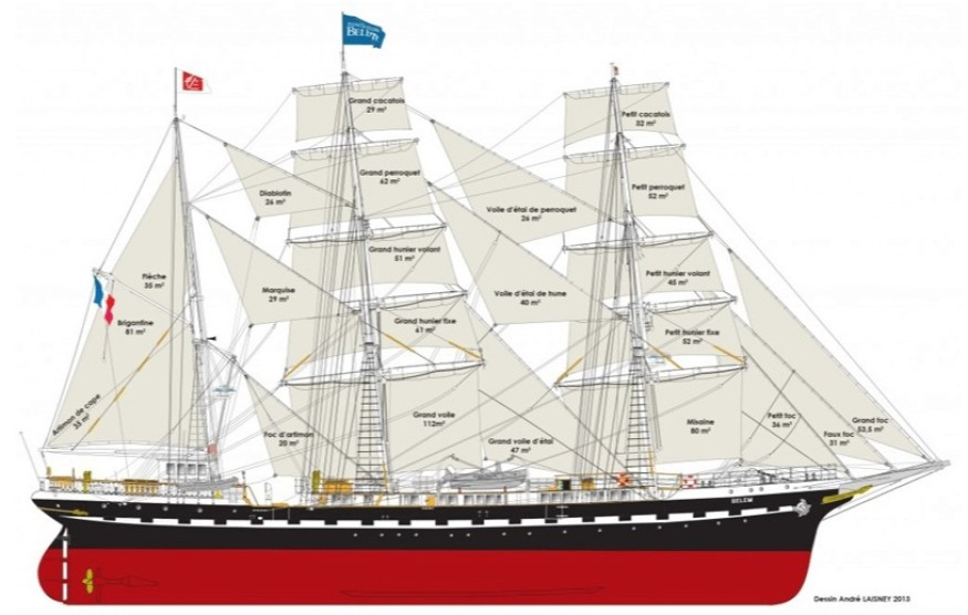 - Le Belem est un navire légendaire, classé monument historique, qui a traversé trois siècles d’histoire maritime. Construit en 1896, il est l’un des plus anciens grands voiliers naviguant au monde. Avec ses 58 mètres de long et son impressionnante voilure de 1 200 m² (comprenant 22 voiles et 250 poulies), le Belem est un symbole de la France et de ses traditions maritimes3.