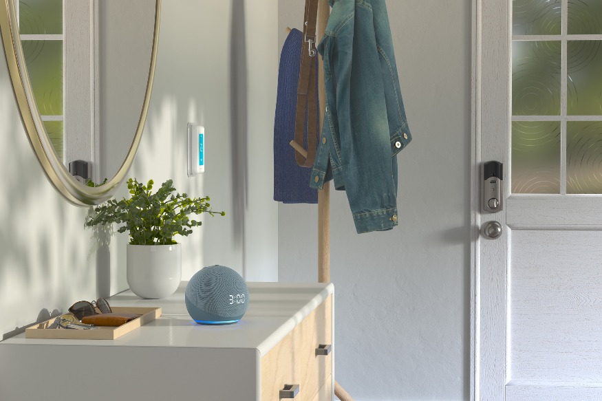 Appareil Echo bleu crépuscule dans une cuisine